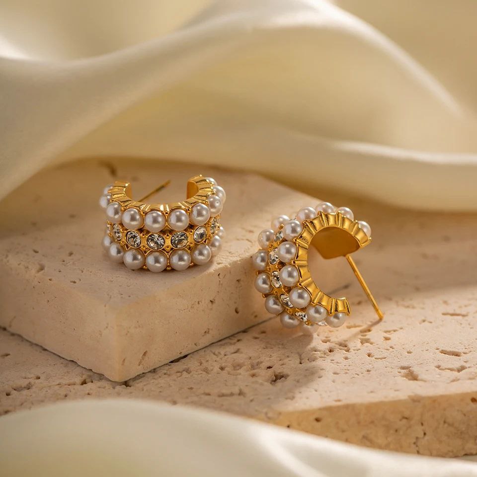 Aritos acero inoxidable, pequeñas incrustaciones de perlas