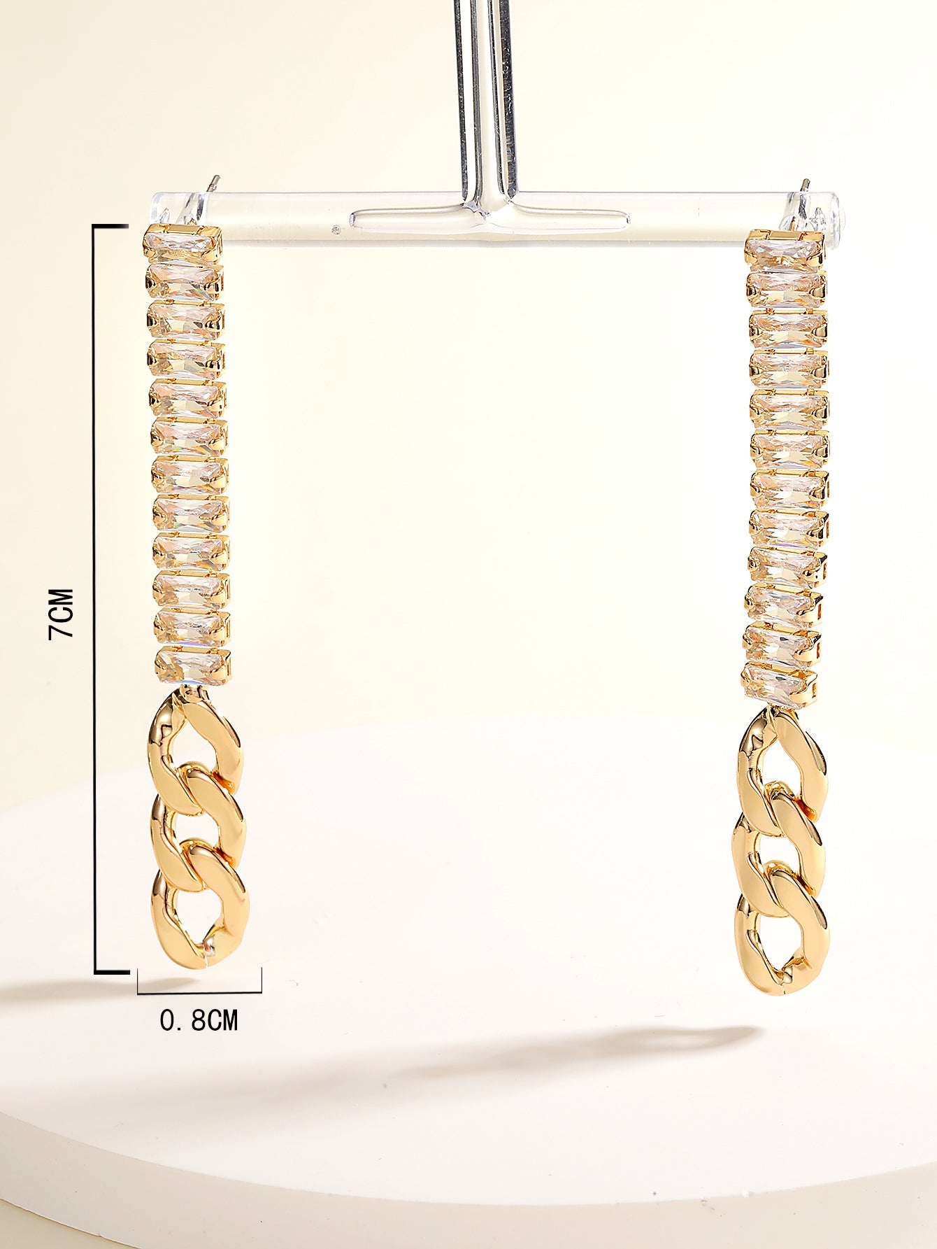 Aritos elegantes largos en forma de cadena, baño de oro 18K