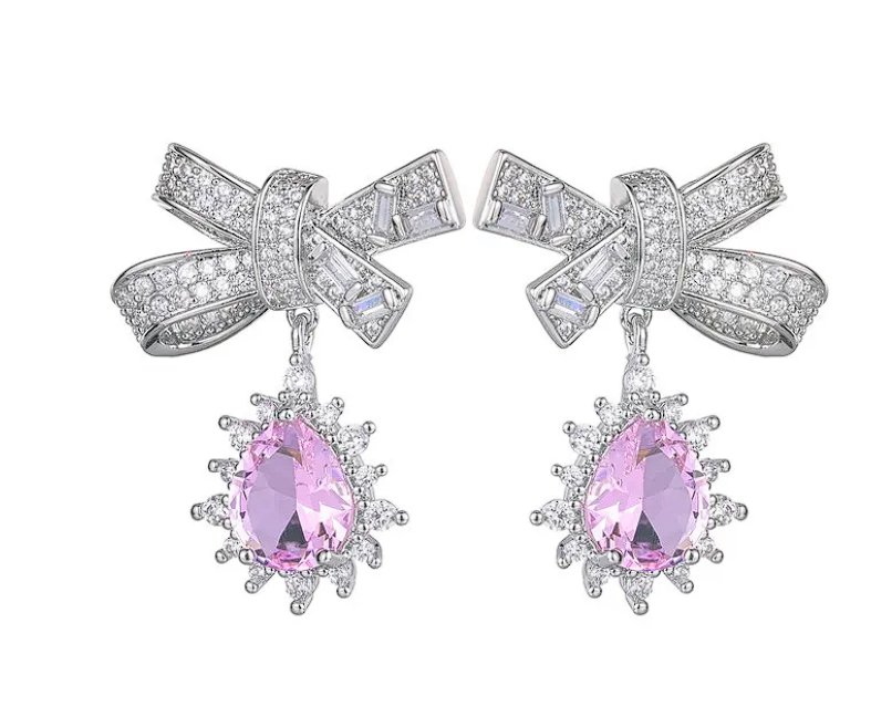 Aritos pequeños con dije en forma de gota con diamante zirconia cúbica, laminado en oro