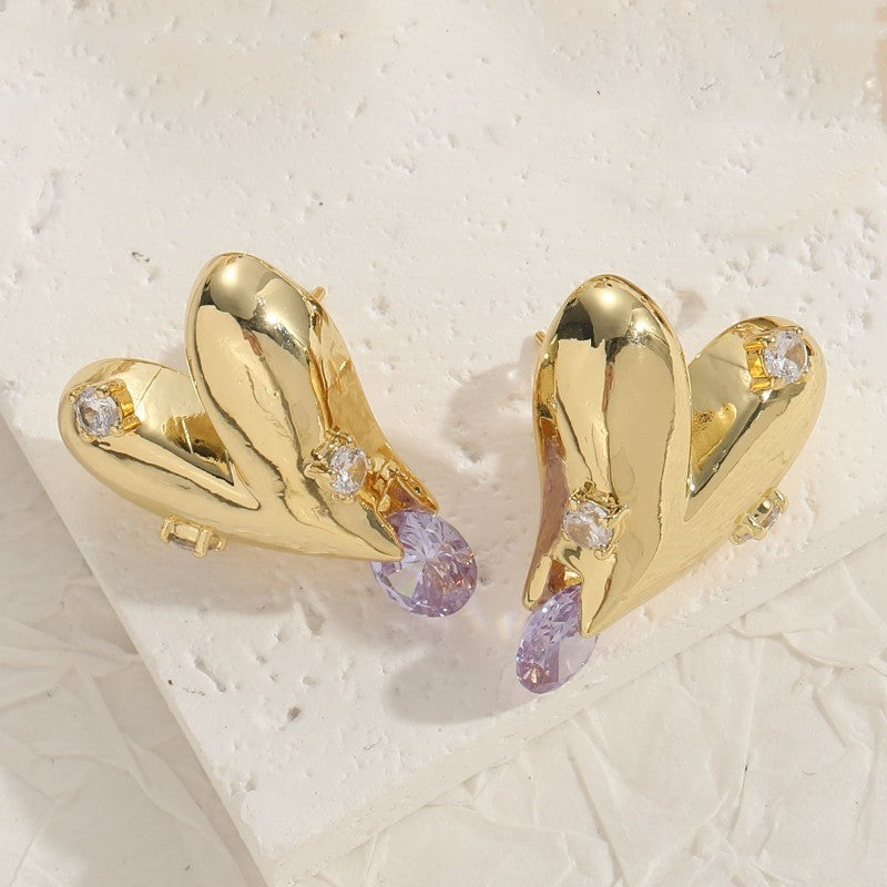 Aritos pequeños en forma de corazón, liso, baño de oro 14K