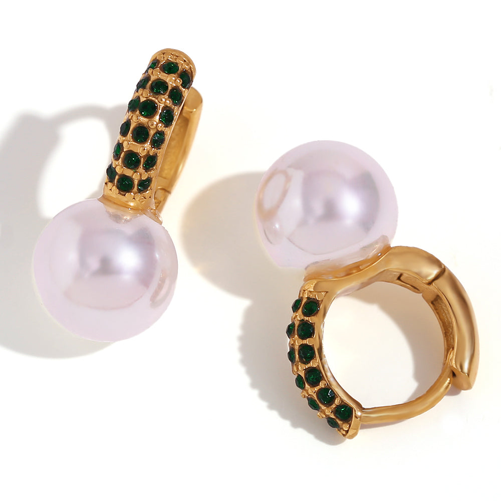 Aritos pequeños con perla artifical, incrustaciones de zirconia baño en oro 18K