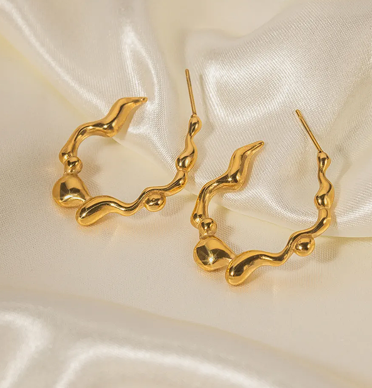Aritos en forma de C con diseño irregular, acero inoxidable