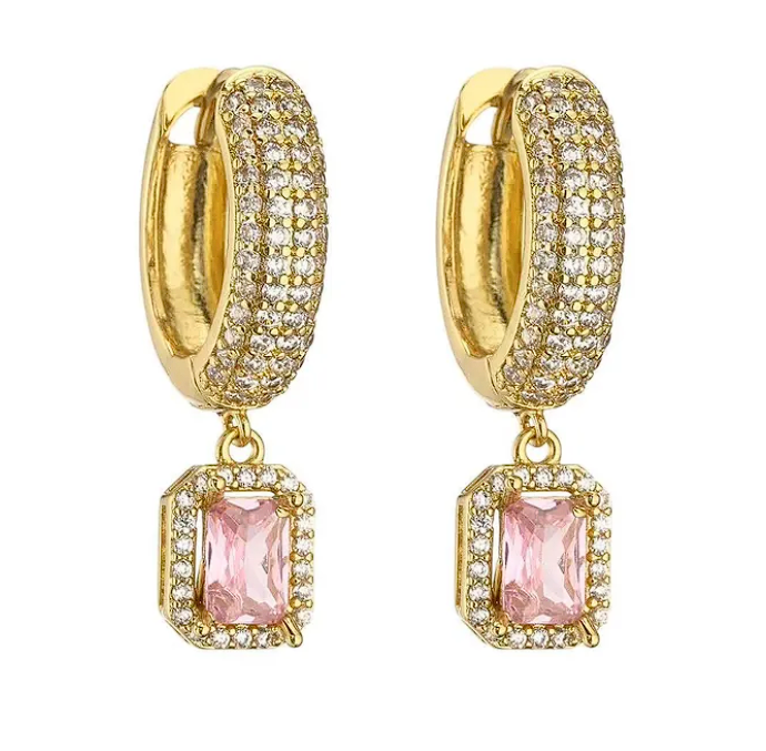 Aritos pequeños, huggies,laminado en oro con piedra e incrustaciones de zirconia
