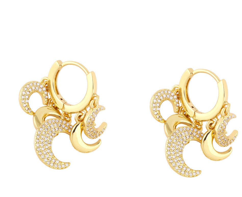 Aritos con dijes de luna, laminado en oro