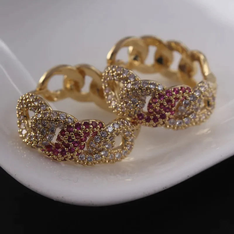Arito de aro en forma de cadena, laminado en oro con incrustaciones de zirconia
