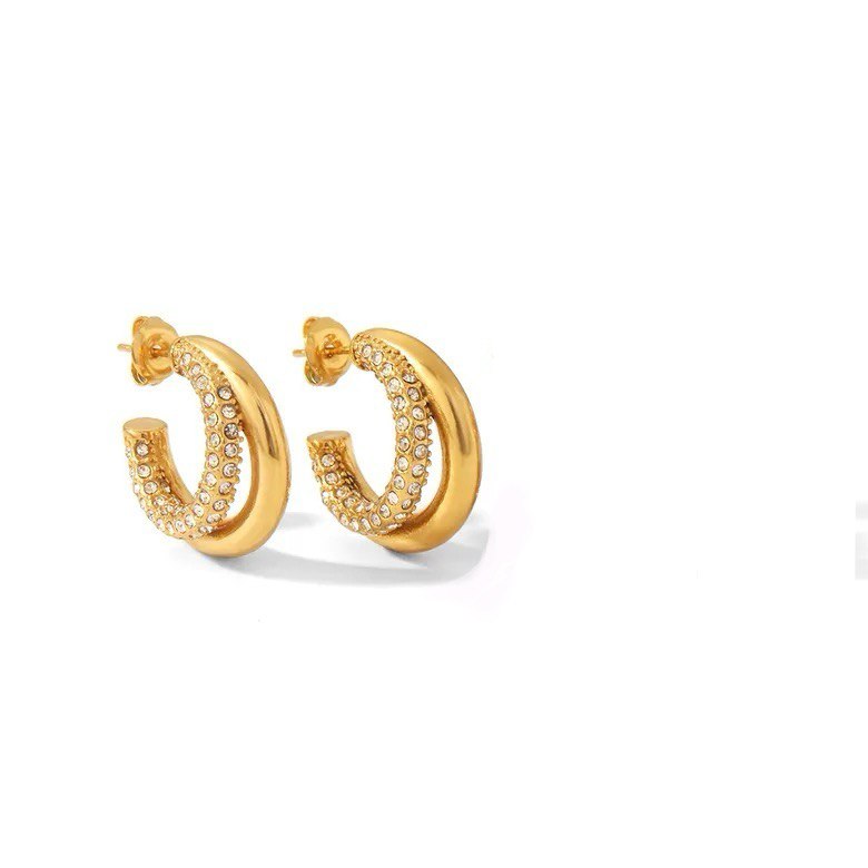 Aritos en forma de C, baño de oro de 18K con incrustaciones de perlas pequeñas artificiales