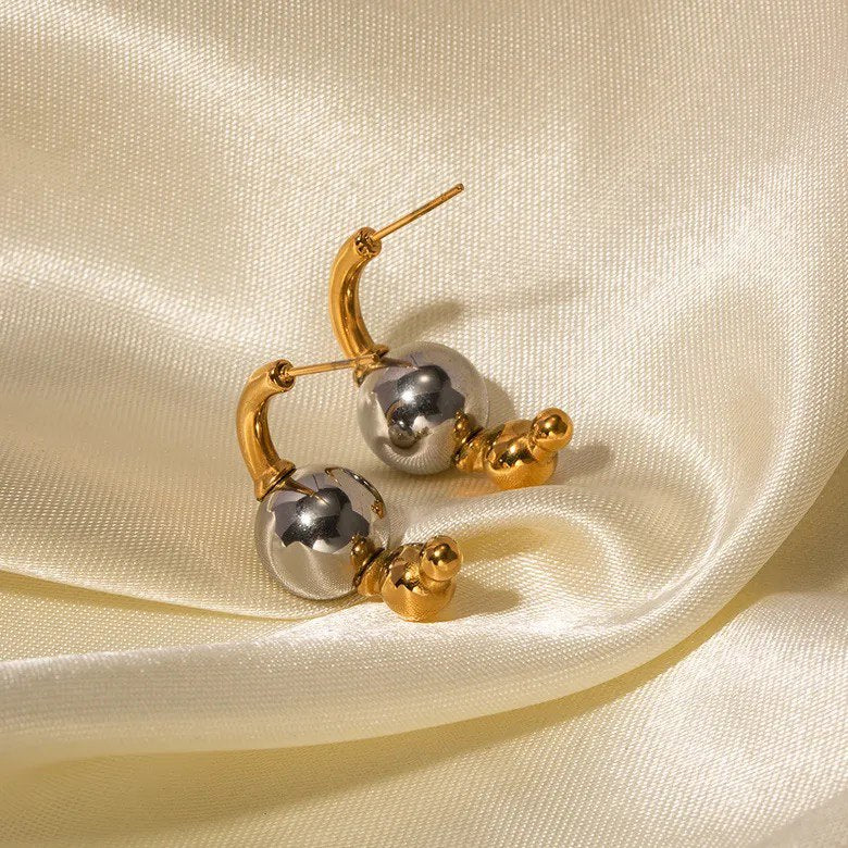 Aritos de borlas, acero inoxidable en baño de oro 18K
