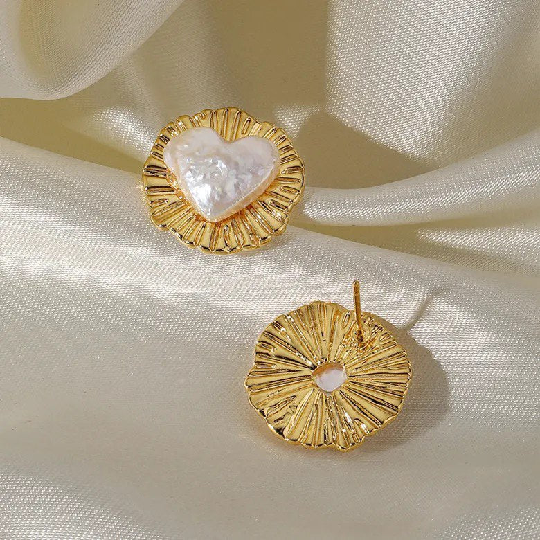 Aritos pequeños de corazón, baño de oro de 18K