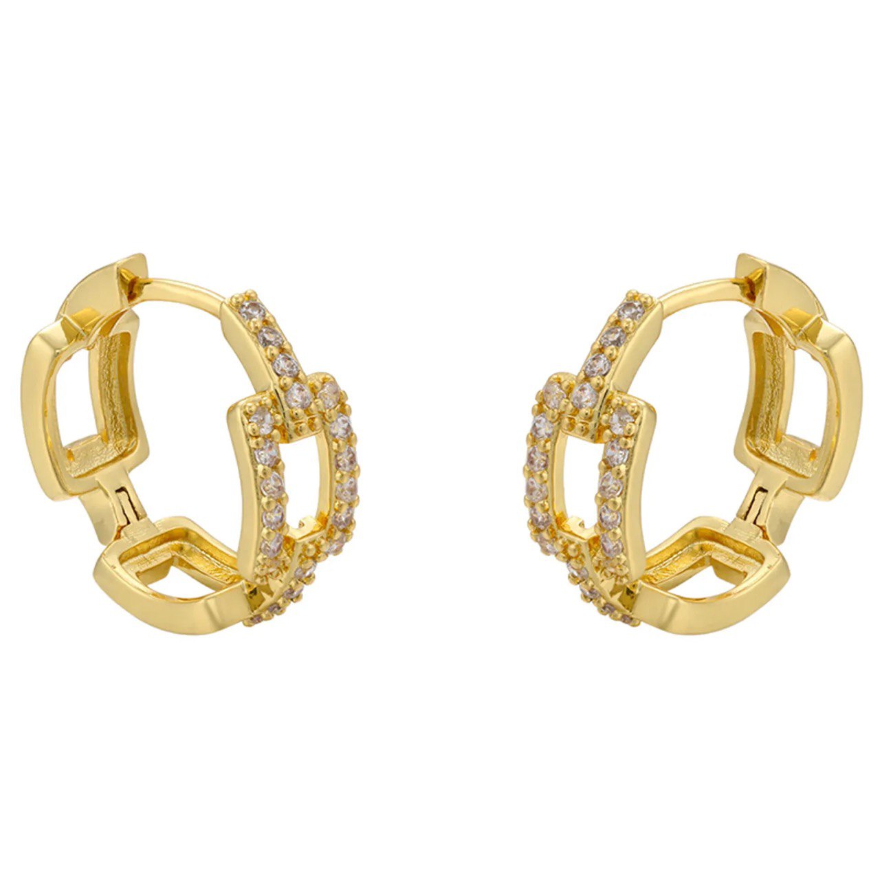 Arito de aro en forma de cadena, laminado en oro con incrustaciones de zirconia