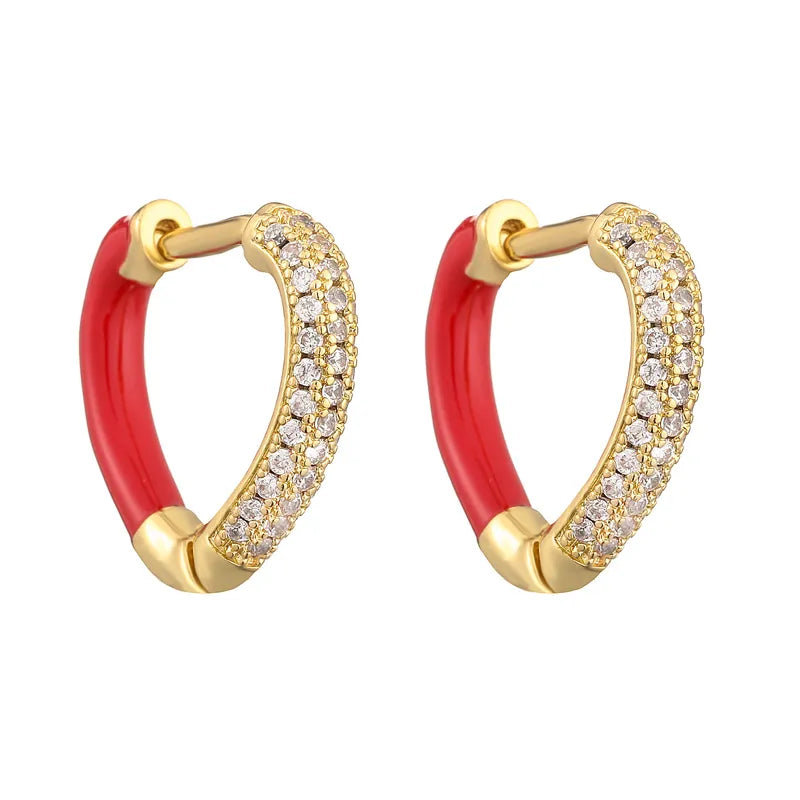 Aritos en forma geométrica, laminado en oro con incrustaciones de zirconia.