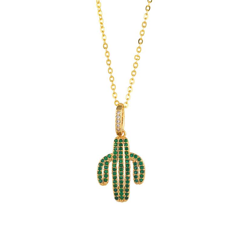 Cadena con dije de cactus, plata S925 con incrustaciones de zirconia