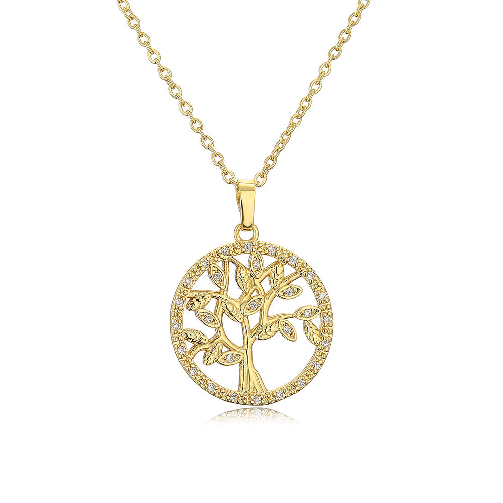 Cadena con dije de arbol de la vida con incrustaciones de zirconia, laminado en oro