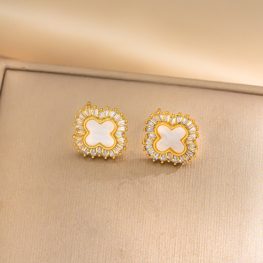 Aritos , stud, laminado en oro, trébol