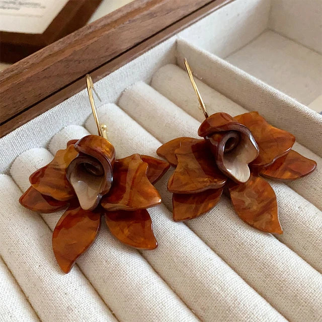 Aritos , hoops, laminado en oro y nacar, en forma de flor